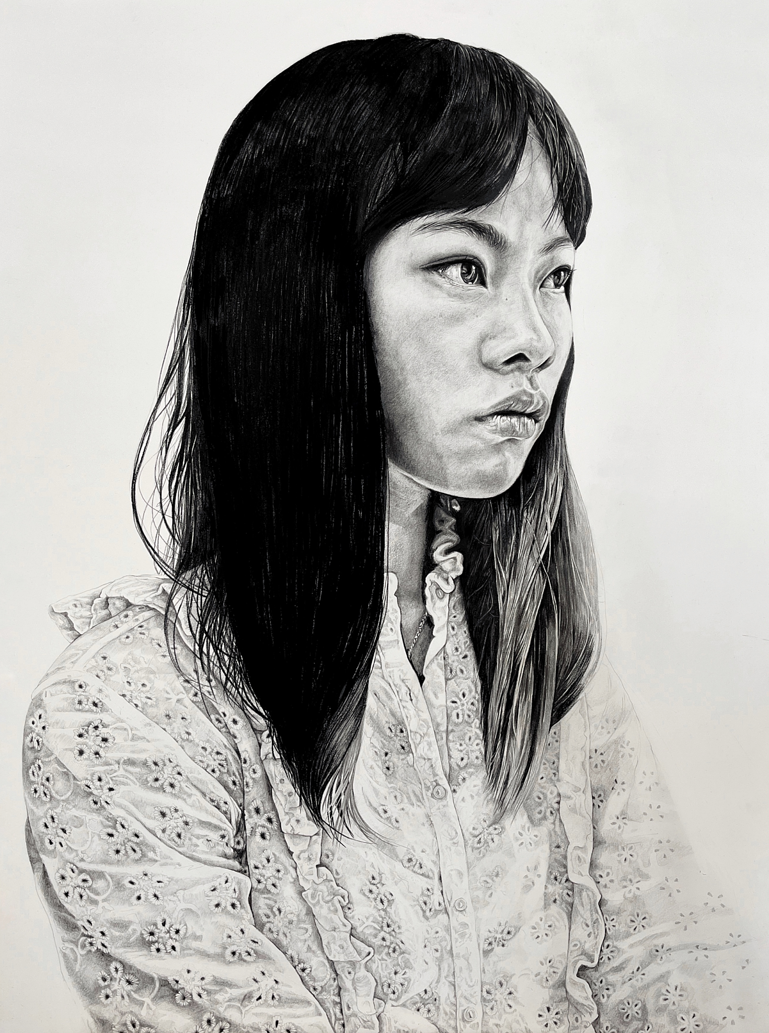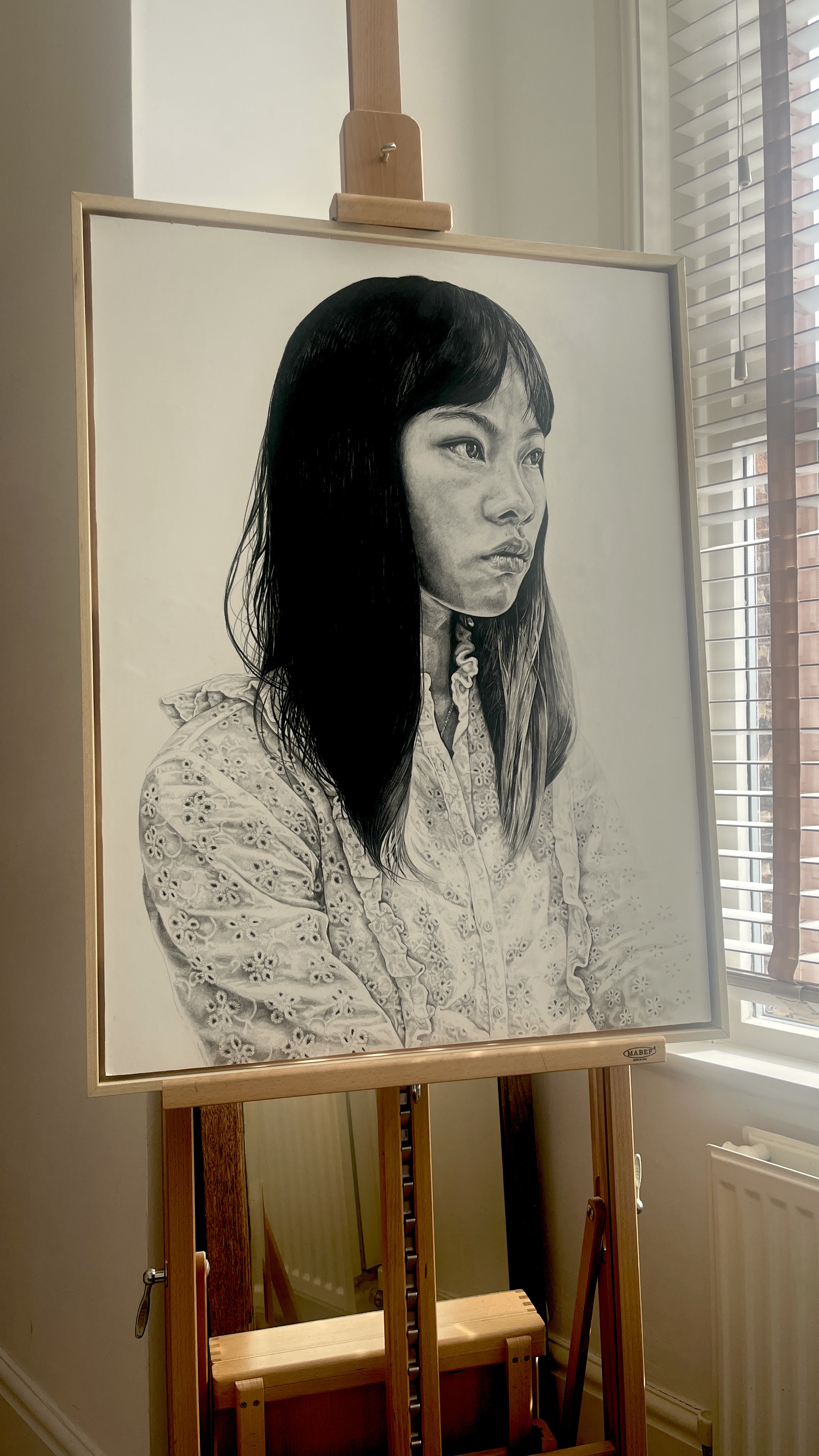 A large scale charcoal study of Maddie. 80x60cm on wooden panel